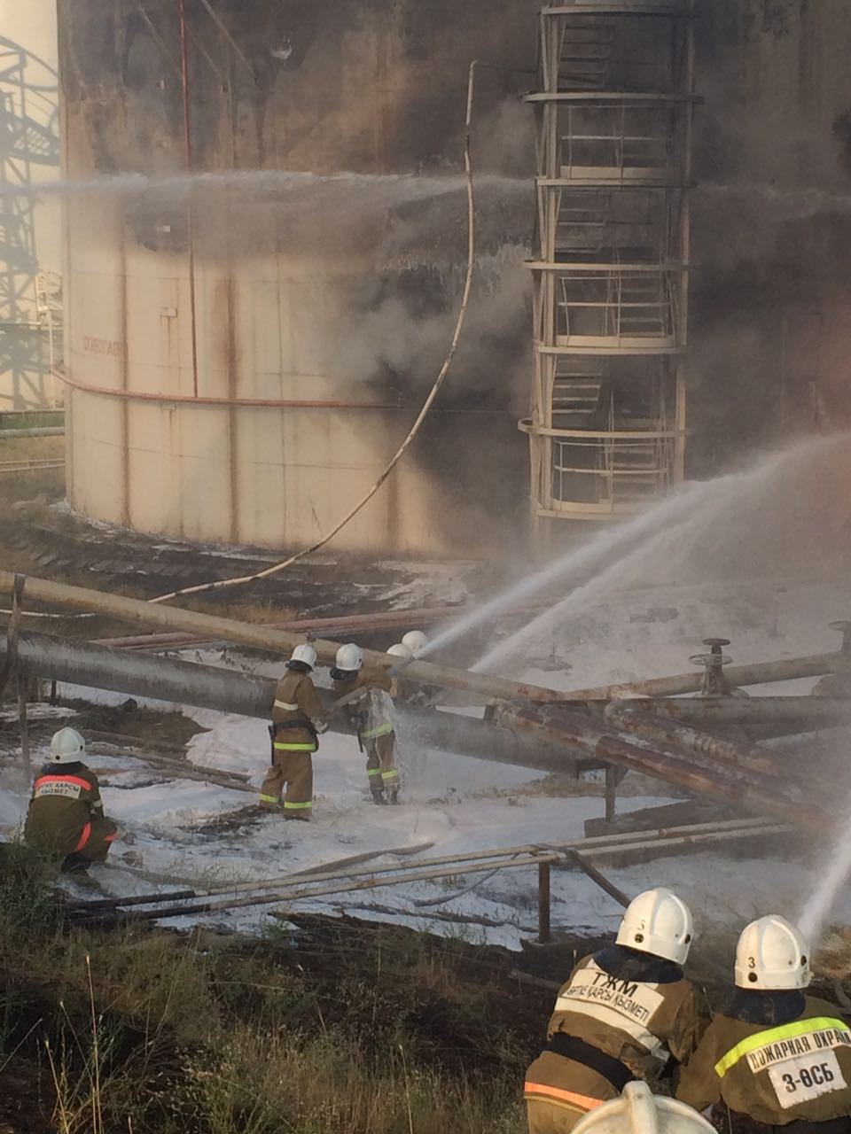 Были приняты дополнительные меры привлечения пожарного поезда из г. Арысь и подвоза пенообразователя, а также обеспечения бесперебойной подачи воды от ближайшего водоисточника (река на расстоянии 1,2 км).