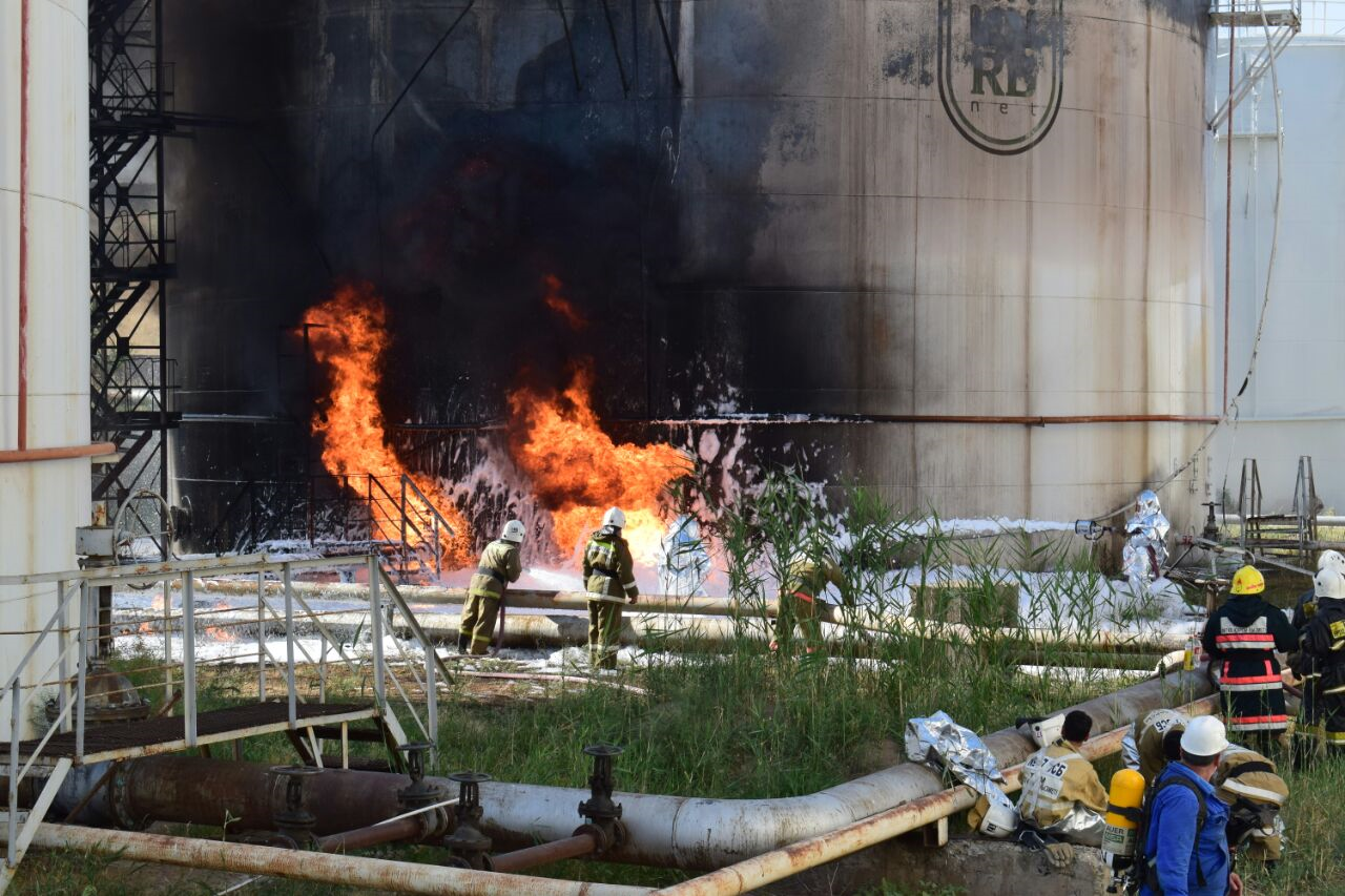 Пожарные принятыми мерами не допустили распространение огня на соседние резервуары с горючим топливом и ликвидировали пожар в 06 часов 40 минут 24 июня 2017 года на общей площади 190 кв. метров.