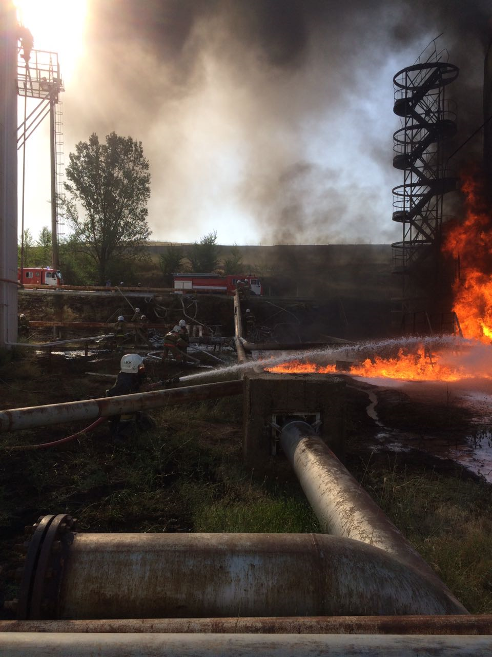 Кроме этого, тушение пожара осложнялось отсутствием доступа к вентилю запорной арматуры, откуда фонтанировало под давлением горящее топливо.