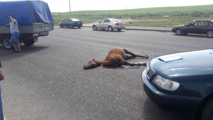 Погиб жеребец и пострадал водитель в ДТП в Алматы