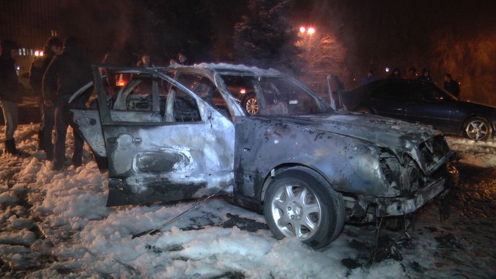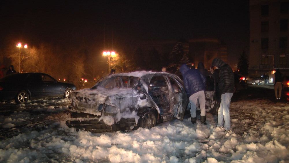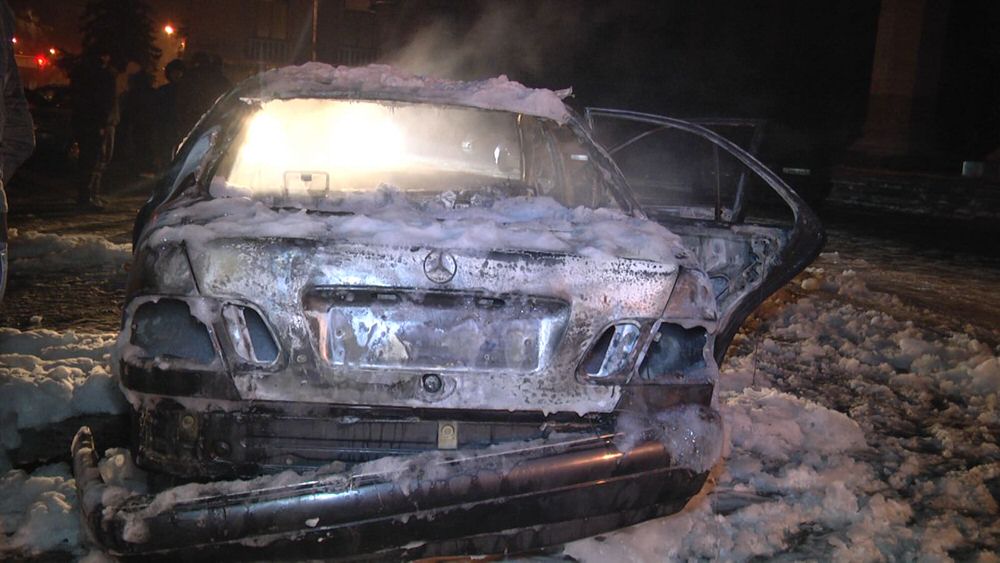 Сегодня, 22 января, в центре Алматы на пересечении улиц Толе би и Абылай хана загорелся автомобиль Mercedes-Benz W210.