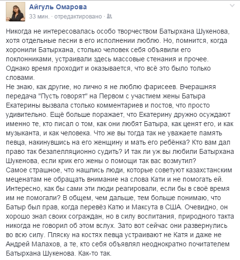 Активное обсуждение вызвало выступление Екатерины Шеляковой в программе «Пусть говорят», передает ИА Total.kz.
