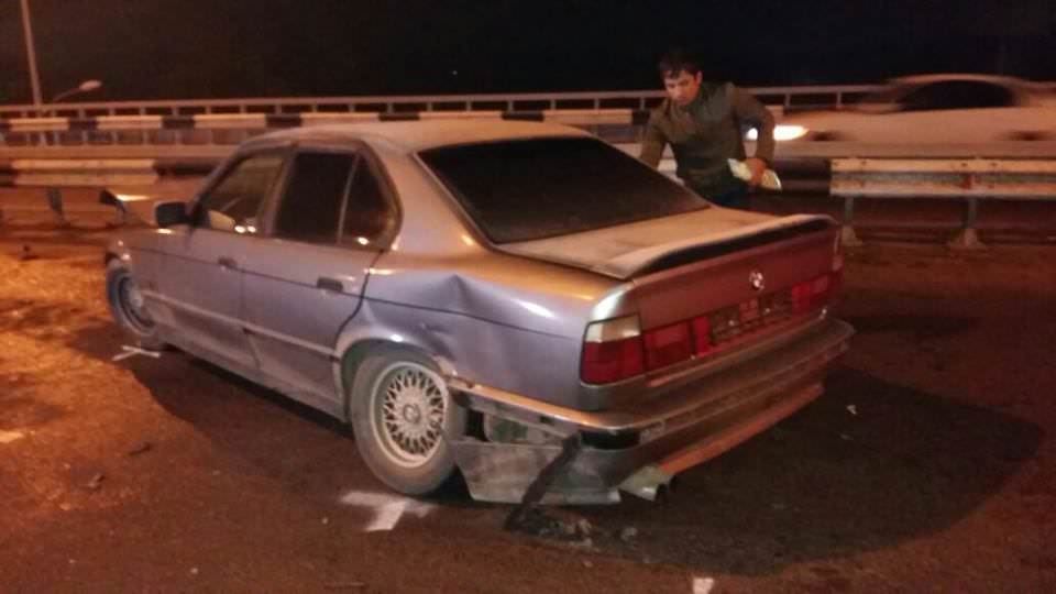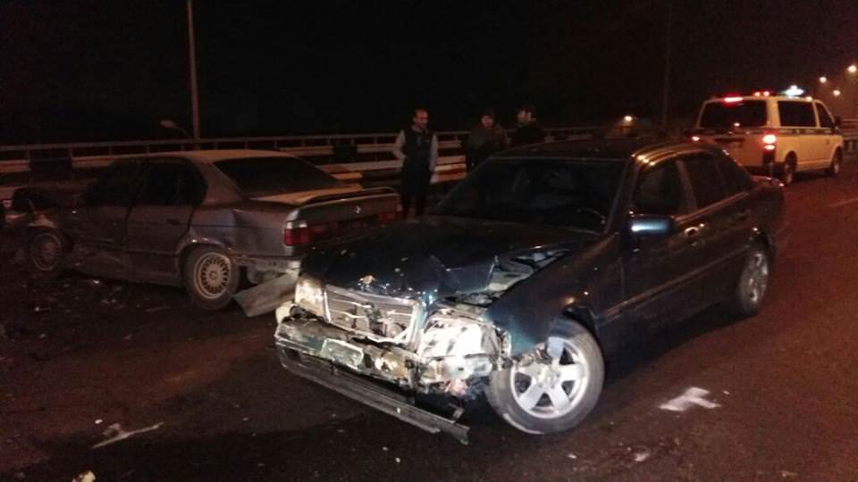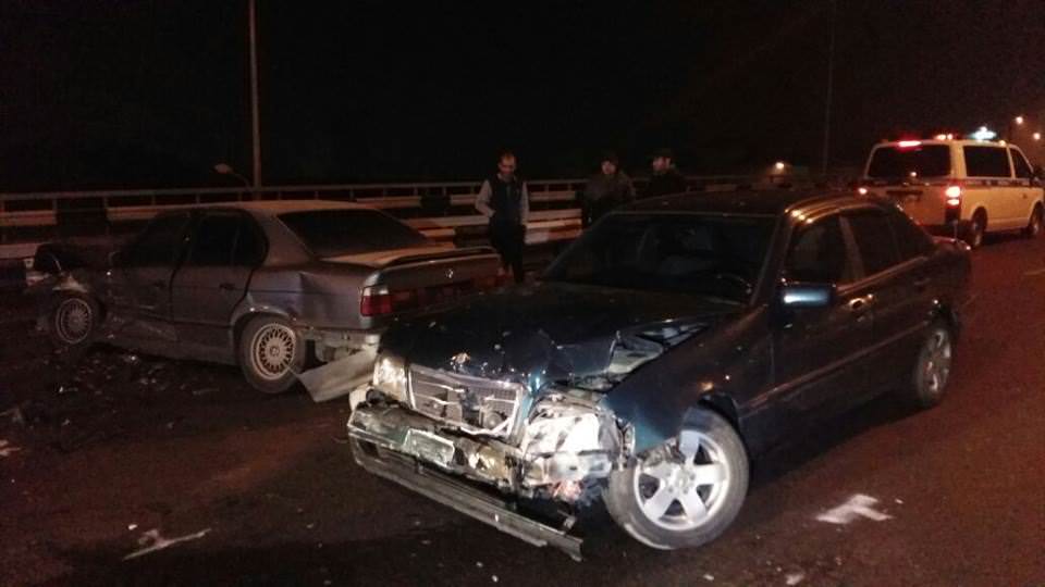 Сначала автомобиль BMW двигался в южном направлении и из-за гололеда совершил наезд на металлическое ограждение моста. После чего машину откинуло и она встала поперек дороги. В этот момент на полном ходу в нее врезается Volkswagen Polo. Примерно через полчаса на большой скорости в ту же BMW влетел и Mercedes-Benz.