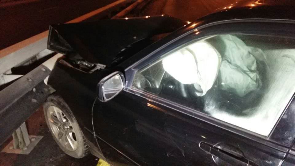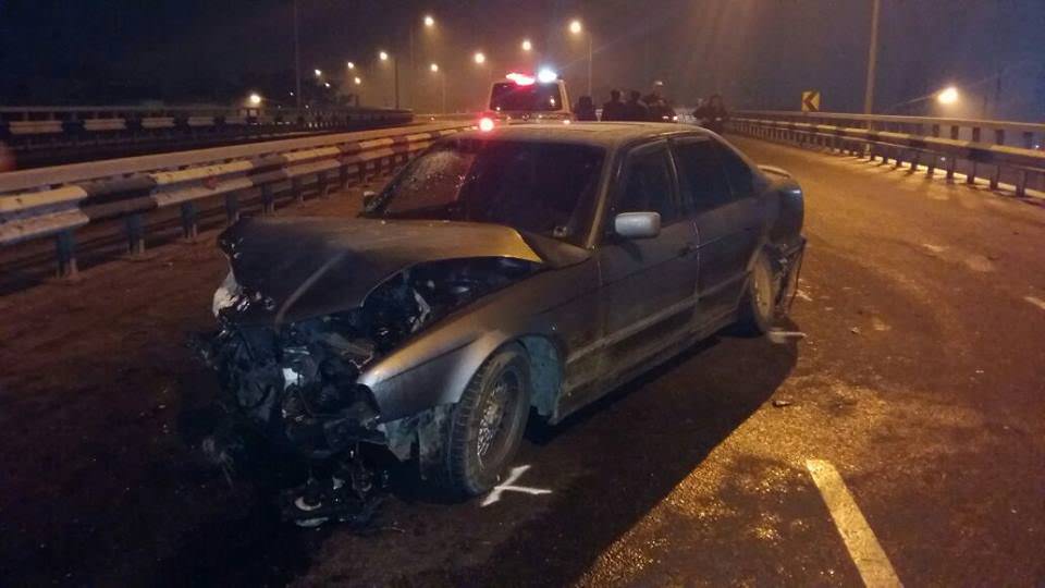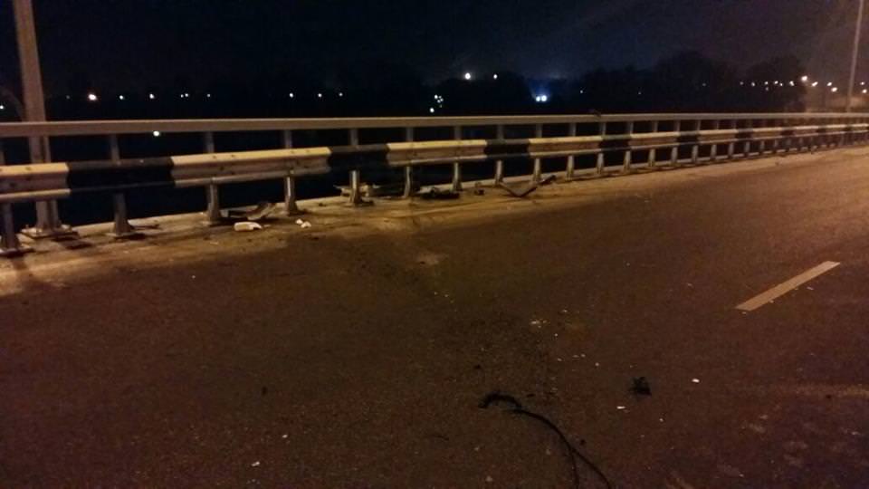 Буквально через пять минут после этой аварии на том же мосту Lexus двигается в северном направлении, водитель не справляется с управлением и направляет авто в отбойник, после чего престижную иномарку откидывает в другой.
