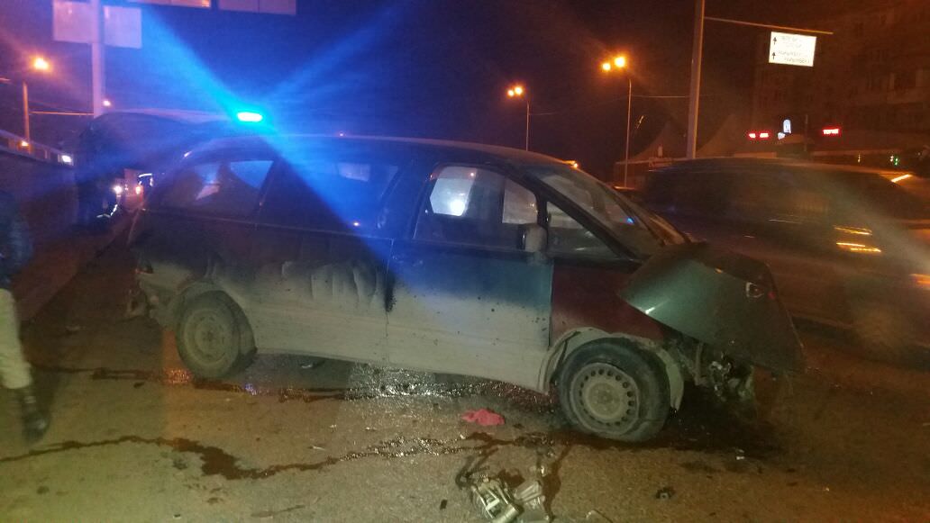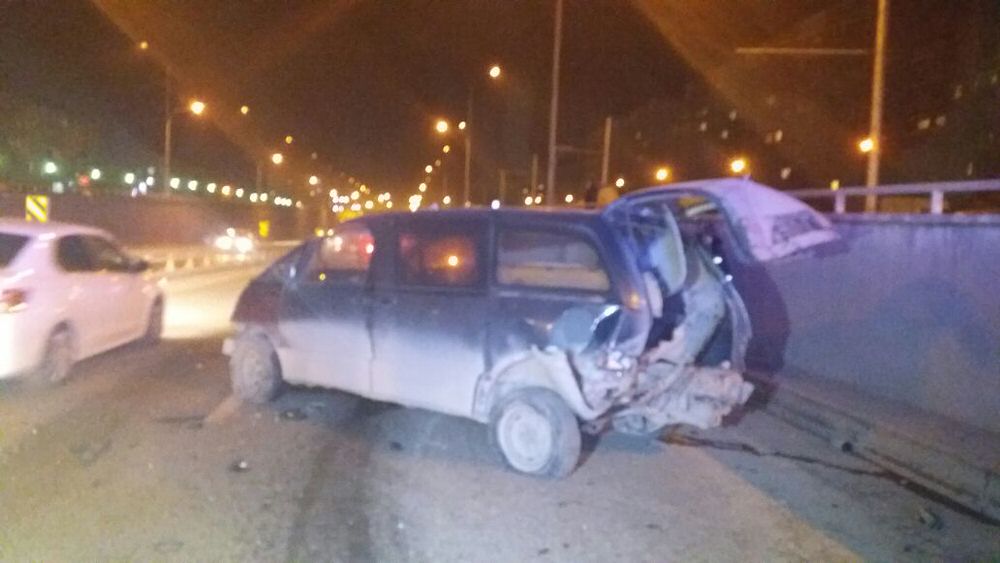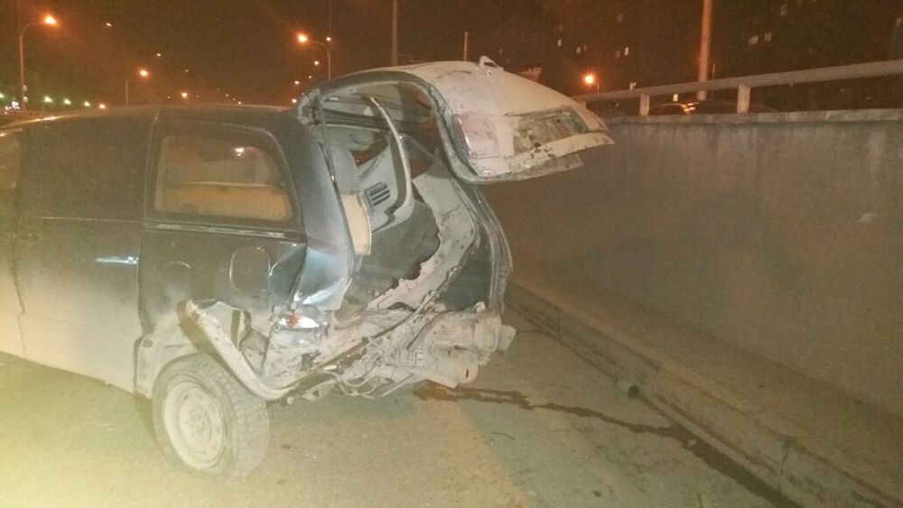 ДТП произошло по Саина выше Толе би. Со слов очевидцев и водителя Тойота Эстима, он двигался по Саина в южном направлении, когда ему в заднюю часть автомобиля на высокой скорости влетел Мерседес, передает корреспондент Total.kz