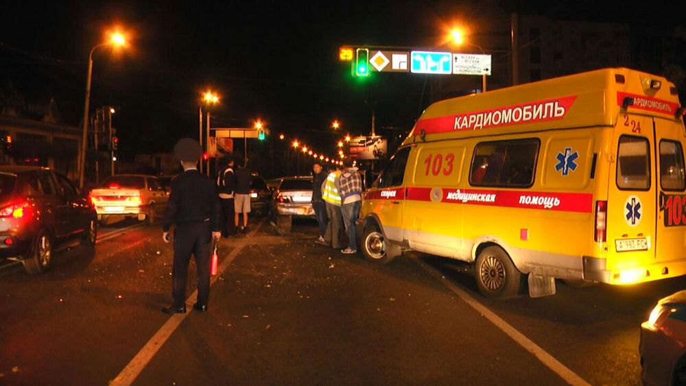 Первый дорожный инцидент произошел на пересечении улиц Шаляпина и Саина. Здесь Subaru Legacy на большой скорости зацепил стоящий на светофоре внедорожник Mitsubishi Pajero. Водитель легковушки решил уйти от ответственности и попытался скрыться с места ДТП. Однако на следующем перекрестке он не справился с управлением и врезался в Honda CR-V. Автомашины буквально раскидало в разные стороны: Honda врезалась в Nissan Almera, а виновника аварии откинуло на припаркованный BMW. В результате столкновения пострадали люди, находящиеся в Subaru – водитель и пассажир. Пострадавших госпитализировали в седьмую городскую больницу.