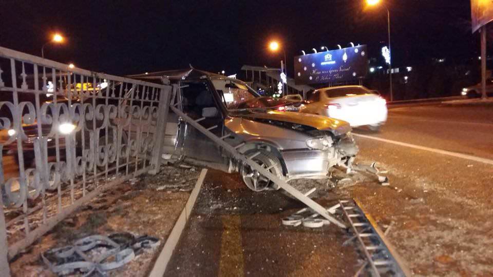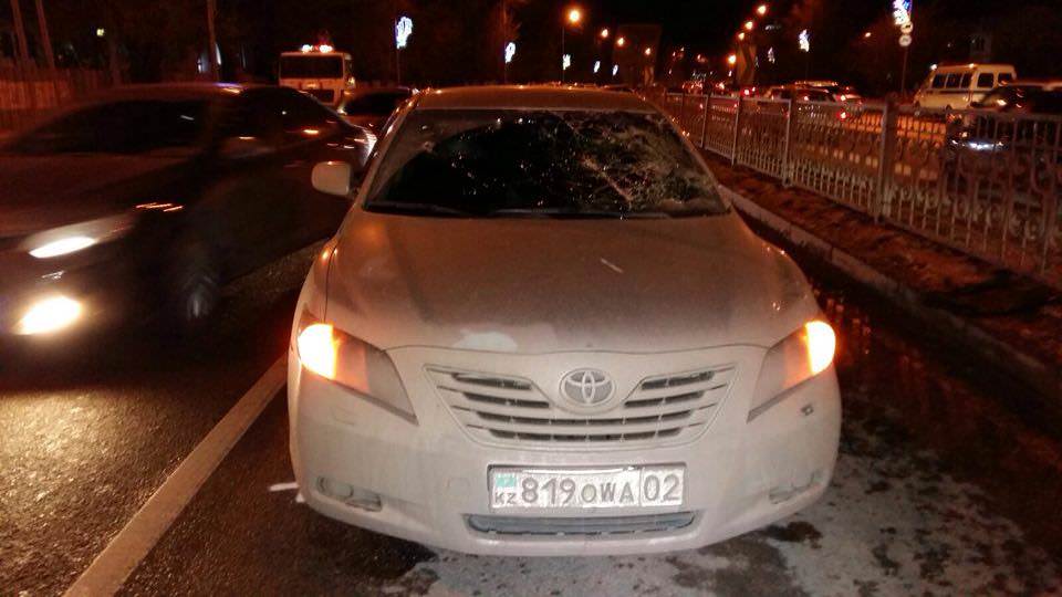Известно, что по проспекту Аль-Фараби в западном направлении двигалась машина марки ВАЗ-21014. По словам водителя, его кто-то подрезал на дороге. В связи с чем он, не справившись с управлением, въехал в ограждение аллеи, что расположена вдоль дороги. От удара обломки забора разлетелись. Один из которых попал в лобовое стекло машины марки Toyota Camry, что двигалась по Аль-Фараби в западном направлении.