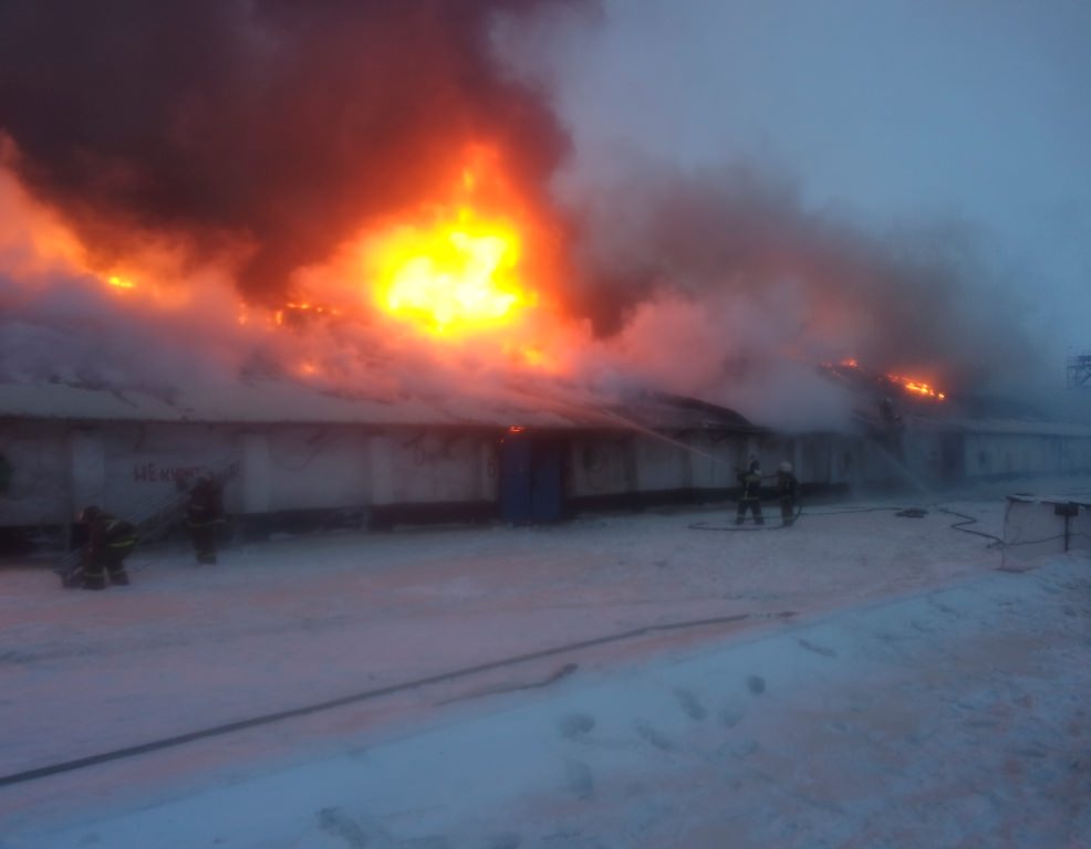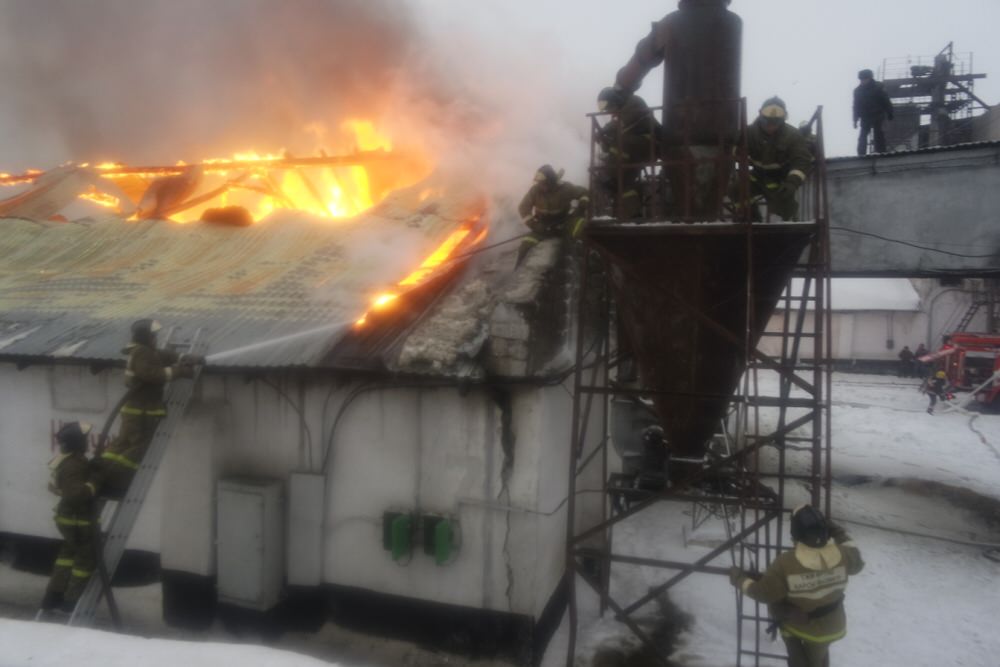 Сгорели два зерновых склада в Щучинске