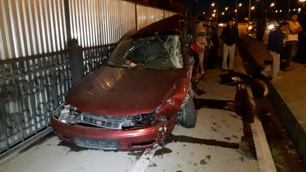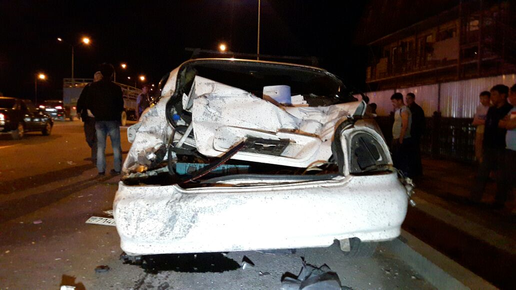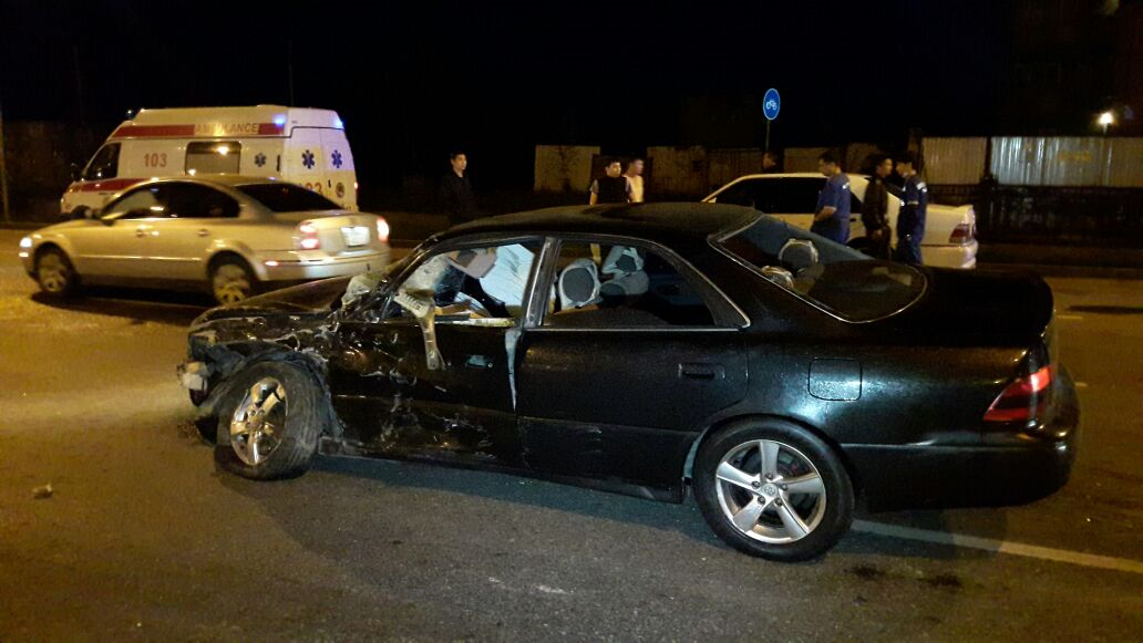 Со слов очевидцев, «Тойота Виндом» двигалась в западном направлении, водитель не справился с управлением и врезался в «Мазду Кронус». Та перелетела через арык и врезалась в забор. По пути «Мазда» ударила «Хундай Сонату», а та по инерции «Дэу Эсперо». Все три машины стояли припаркованные.