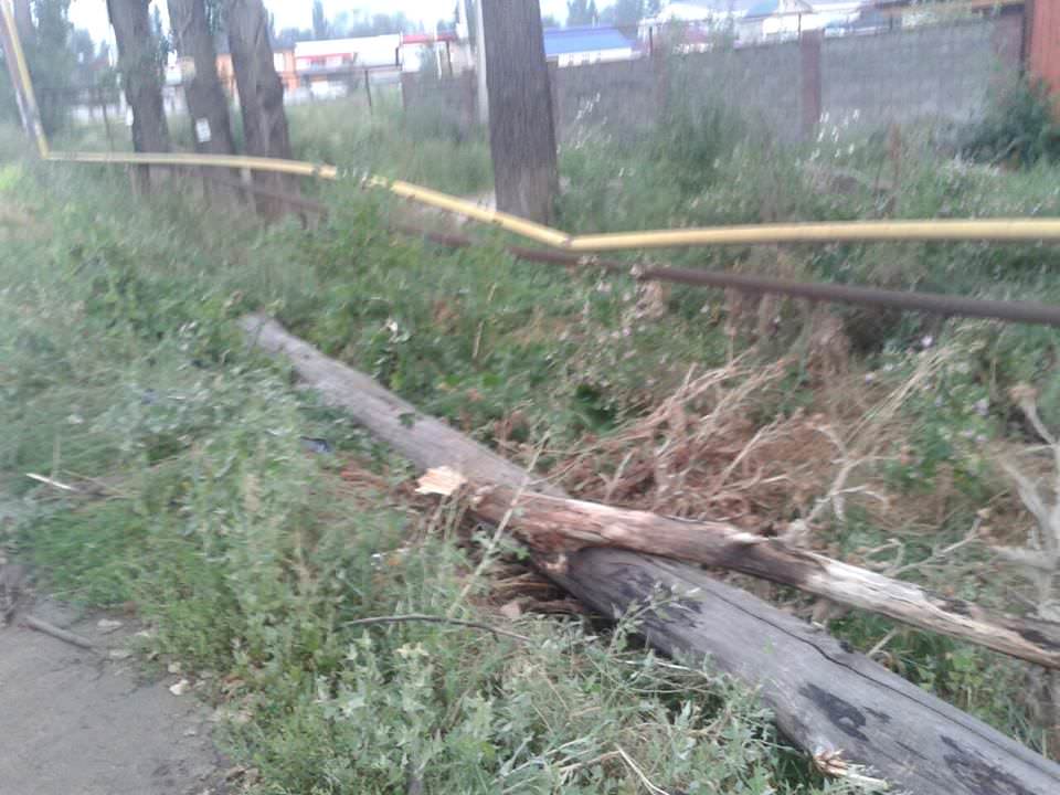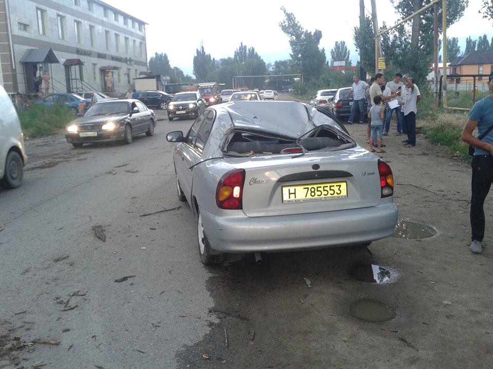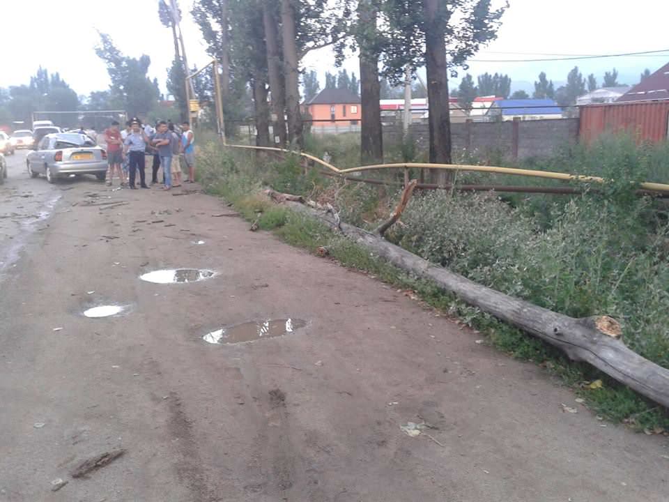 На Центральной улице поселка Теректы упало дерево на автомобиль Zaz Chance. В результате падения пострадали женщина и ребенок, сидевшие на заднем сиденье машины. Упавшее дерево повредило Zaz и находящиеся поблизости газовые трубы. Пострадавших с различными травмами доставили в ближайшую больницу.
