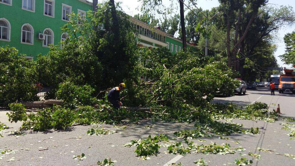 Тополь рос на территории Алматинского экономического колледжа. Пострадавших нет.