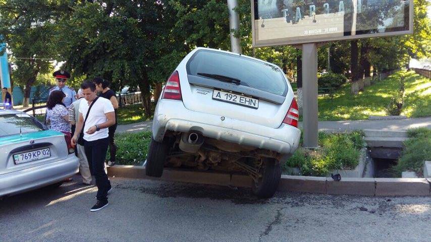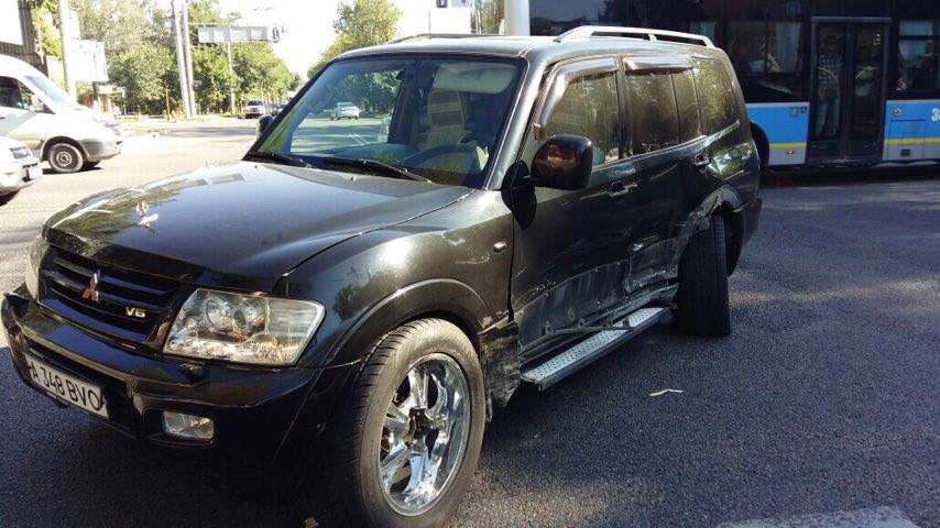 Автомобиль Subaru Forester двигался в западном направлении по проспекту Абая. Водитель японской машины намеревался совершить поворот. В это же время внедорожник Mitsubishi Pajero двигался по Абая в восточном направлении. Оба участника ДТП утверждают, что ехали на зеленый сигнал светофора. В результате удара Pajero откинуло, а Subaru Forester выкинуло в арык. Пострадала женщина, которую на месте осмотрели медики.