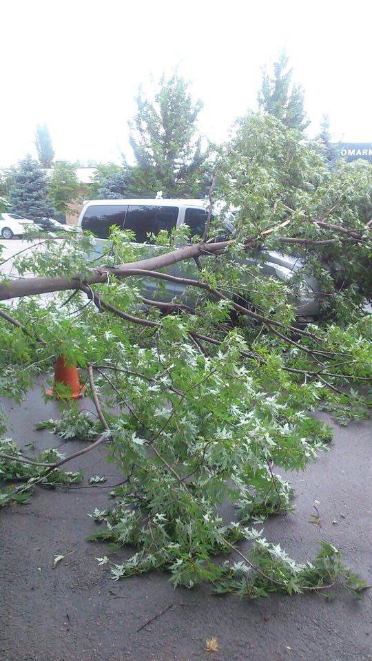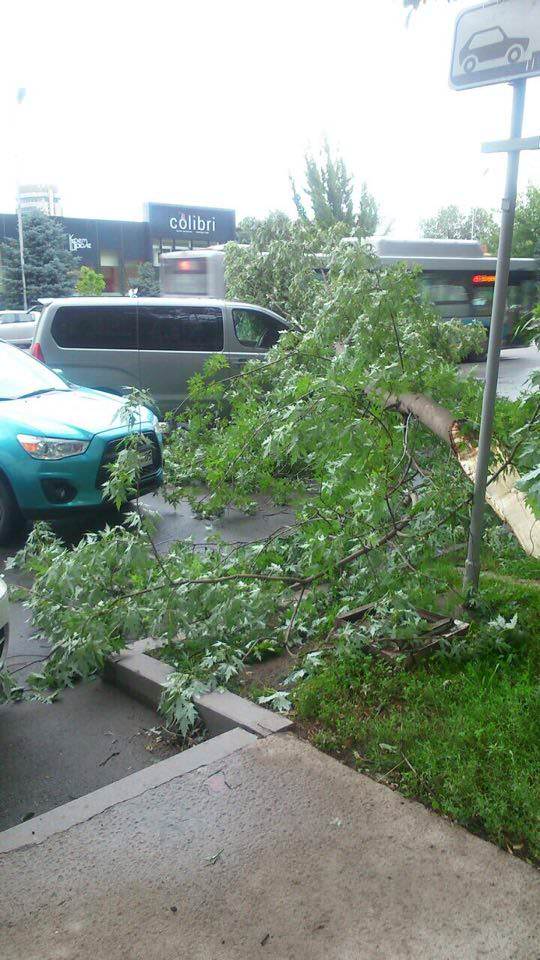 ЧП произошло на Cатпаева между Фурманова и Достык, там на машину Huindai Starex обрушился карагач.