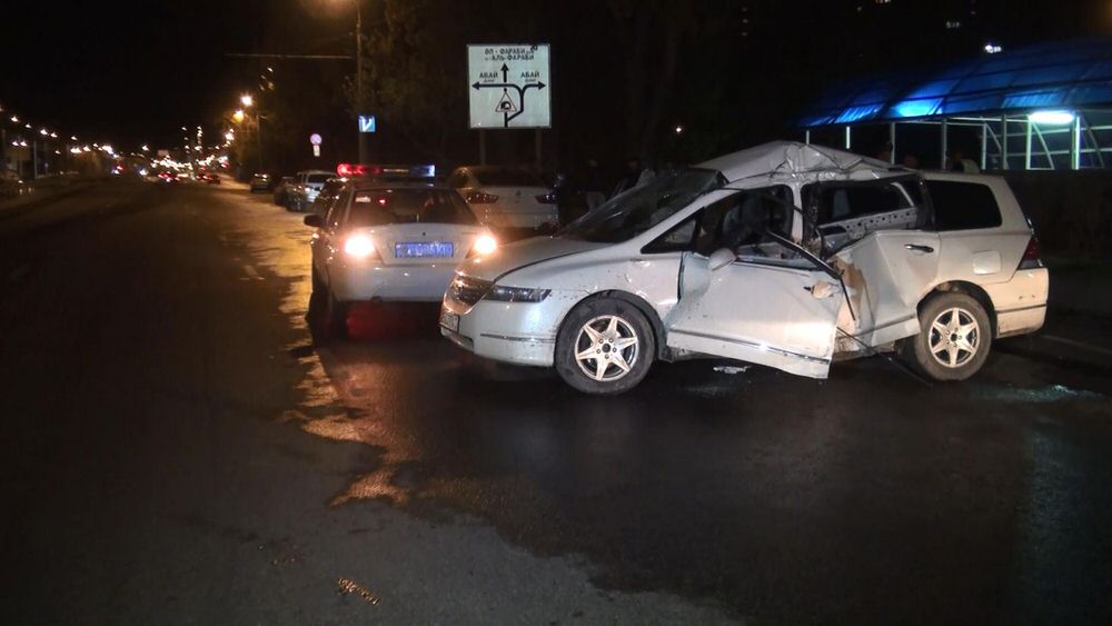 Известно, что автомашина марки Honda Odyssey двигалась по улице Саина в южном направлении. По словам самого водителя, авария произошла из-за того, что его подрезала неизвестная автомашина. От чего он не смог справиться с управлением и въехал в бетонный столб уличного освещения между проспектом Абая и улицей Улугбека. В результате ДТП пассажирка авто – молодая женщина на шестом месяце беременности – от полученных травм скончалась на месте происшествия. Медики «скорой помощи» более часа пытались спасти ей жизнь. Сам водитель авто в аварии сломал ногу и также получил многочисленные повреждения тела.