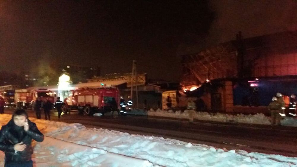 В 17:43 на пульт «101» ДЧС города Алматы поступила информация о возгорании кафе «Ангар», находящегося по адресу Толе би, 279.