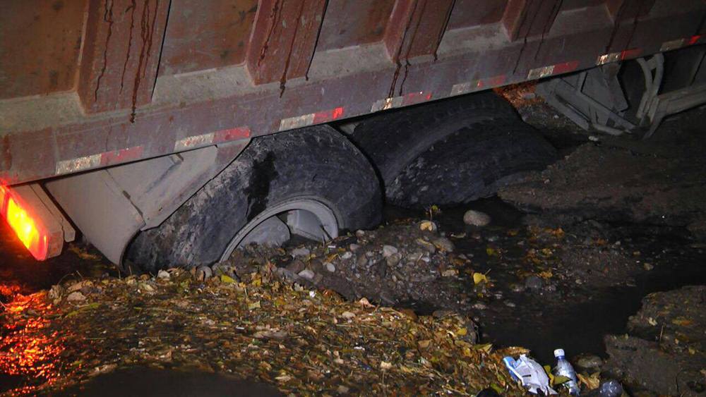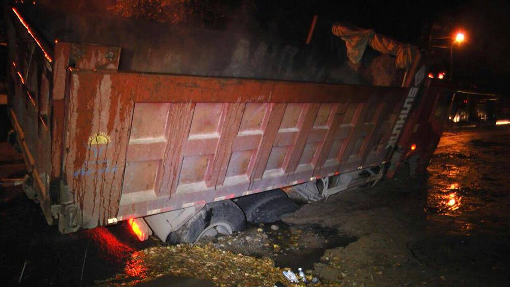 Груженый асфальтом грузовик Hola провалился, когда двигался в северном направлении.