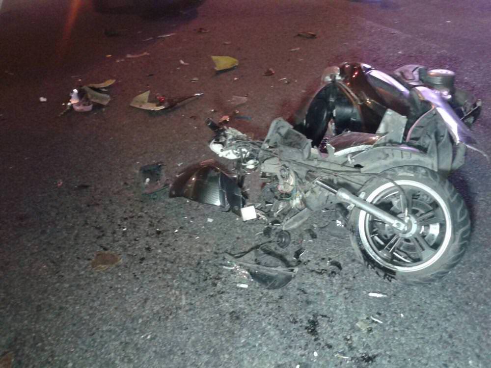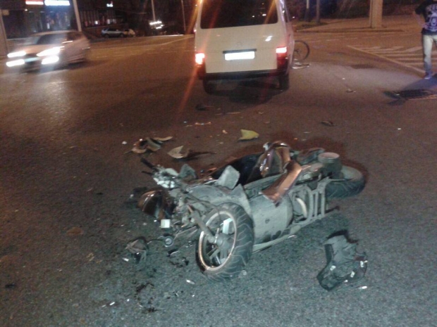 Водитель Wolskwagen Transporter, при совершении левого поворота не заметил легкий мотоцикл, который врезался в грузовик на полном ходу. Водителя мопеда и пассажира госпитализировали с различными травмами.