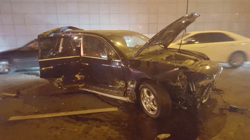 Первым на пути китайского грузовика оказалась Toyota Camry, затем Porsche Cayenne. От удара с последней Shachan откинуло на ограждение, 15 метров которого смялись под весом грузовика. Однако по инерции многотонную машину выкинуло на встречную полосу, где он задел Nissan Juke, направлявшийся на юг. Следующей машиной оказалась Lada, после чего сам грузовик перевернулся.