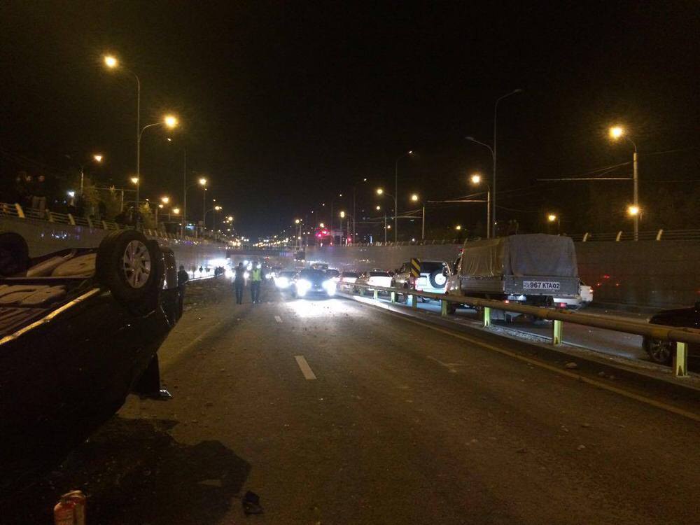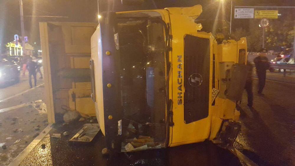 По словам очевидцев, на спуске в тоннель грузовик занесло, в результате чего он перевернулся. Shachan был загружен грунтом с камнями, которые рассыпались на одной полосе, создав препятствие для проезжающих машин. На месте работают службы спасателей и ДВД Алматы. По предварительной версии, пострадали три человека, которые отделались ссадинами. Среди них сам водитель грузовика, Lada и Porsche. В целях безопасности одна полоса на улице Саина перекрыта.