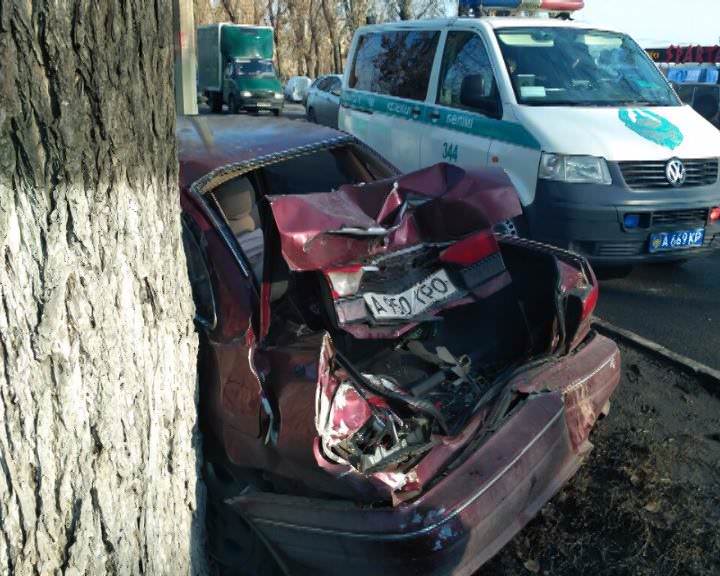 В результате удара Mitsubishi откинуло на обочину, где она врезалась в дерево, а затем в фонарный столб.