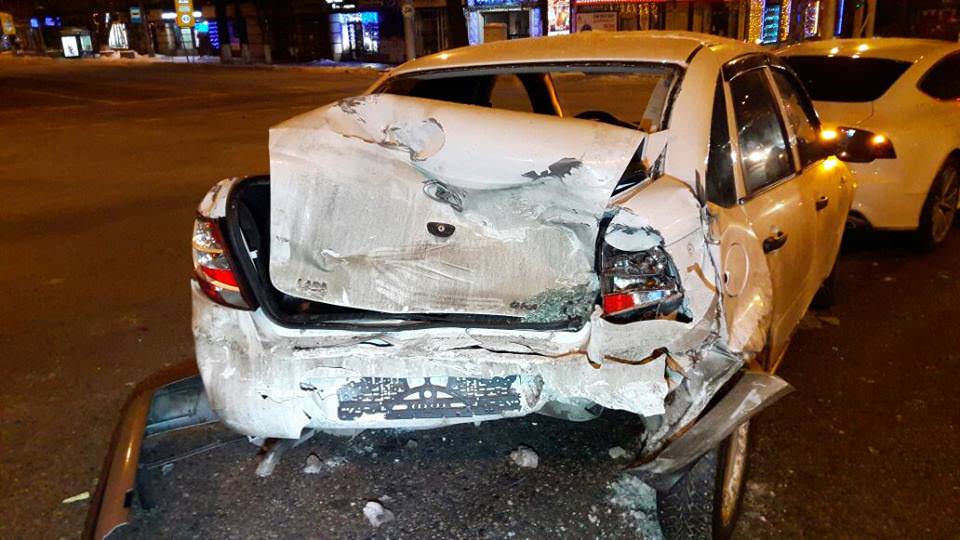 Подъезжая к светофору, где уже стоял ряд машин, ее водитель попытался затормозить, но на скользкой дороге сделать это не удалось. В результате автомобиль стал одну за другой сносить стоящие перед ним машины.