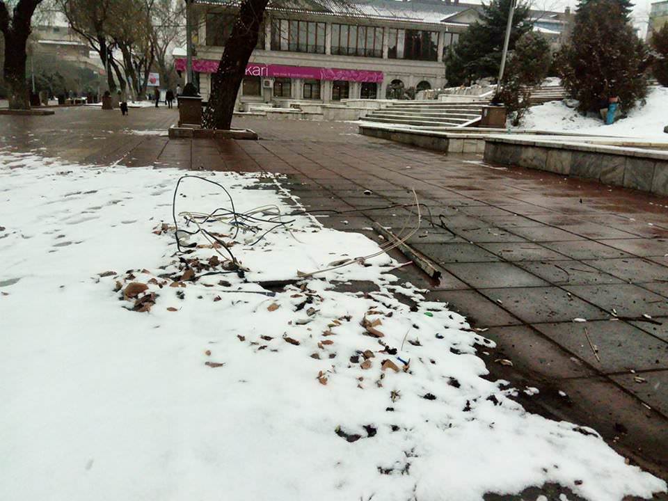 «Вчера здесь стоял киоск – они торговали фастфудом. Сегодня пришли, а здесь пусто. Потом смотрю, во дворе стоят несколько киосков. Стекла разбиты – тут и донерные, и газетные киоски, и кофейные», – удивляется Анвар, живущий в доме на улице Жибек жолы.