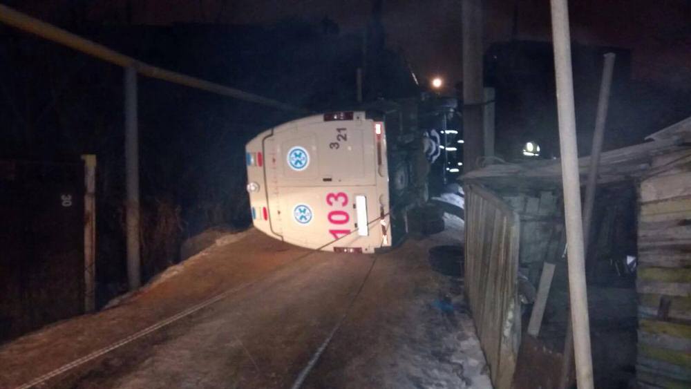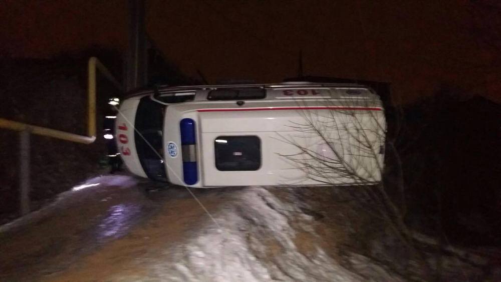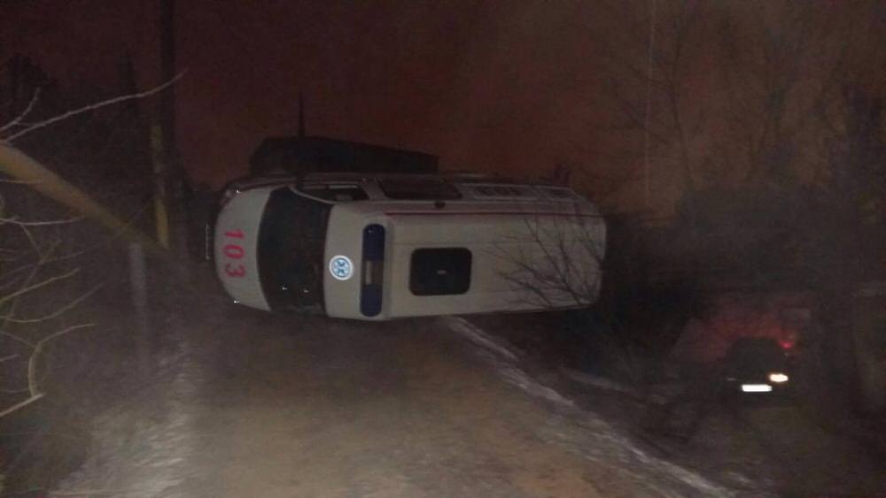 Бригада скорой медицинской помощи спешила на вызов к одному из жителей улицы Ботакара. Поднимаясь по скользкой неасфальтированной дороге, водитель не справился с управлением и автомобиль перевернулся. «Врач скорой вышла и держалась за бок. Ребра, наверное, сломаны. А водитель нормально вылез», - сообщил очевидец события.