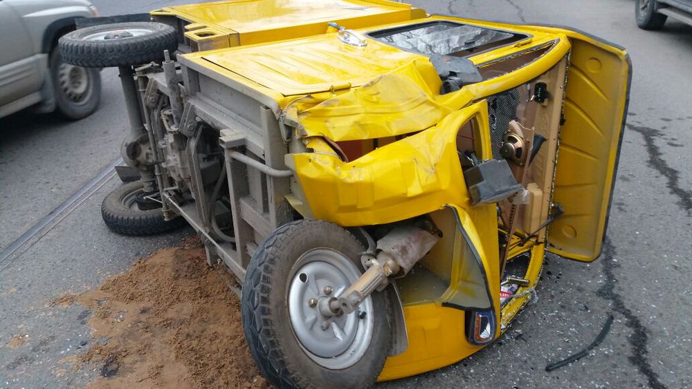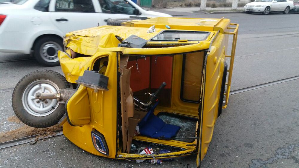 В Алматы перевернулась моторикша. ФОТО