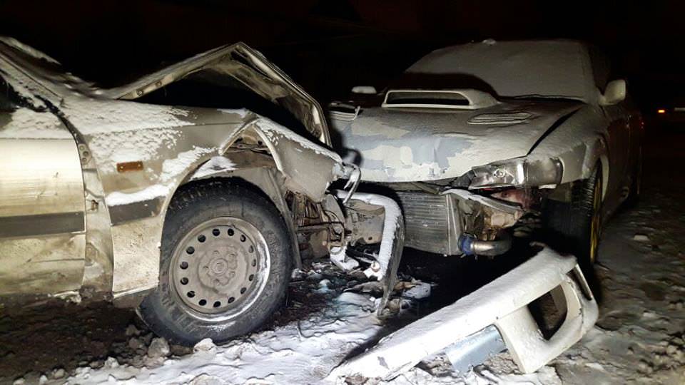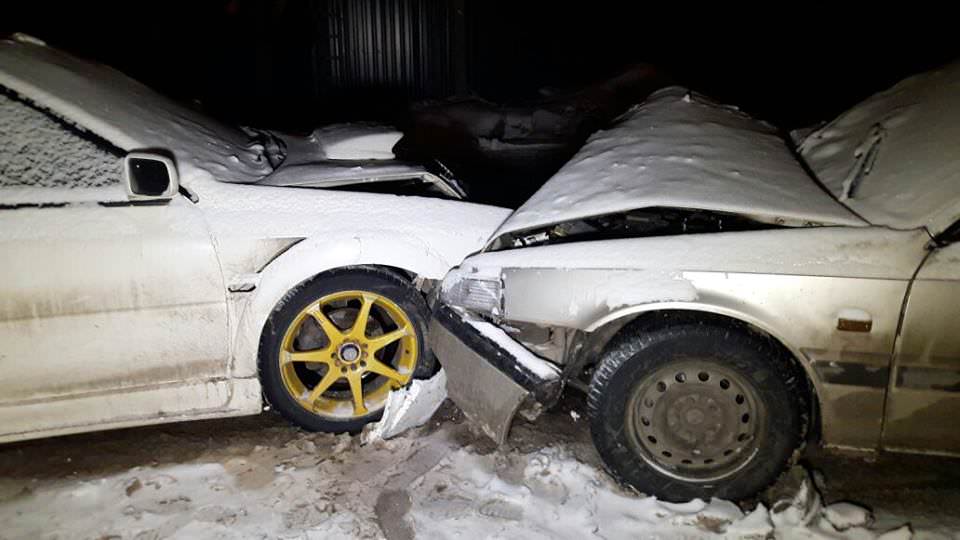 Когда автомобили сблизились, Subaru по непонятным причинам съехал со своей полосы движения и лоб в лоб столкнулся с Mazda.