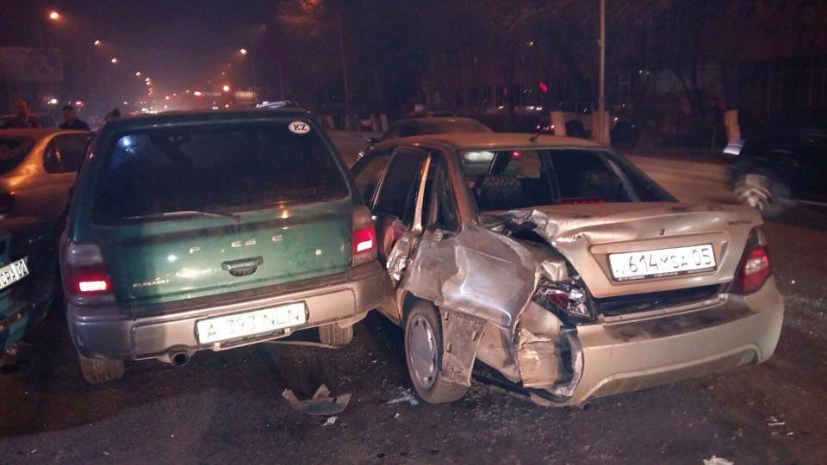 По словам одного из водителей, автомобиль Subaru Forester на большой скорости мчался по проспекту в западном направлении. На светофоре водитель решил проскочить между Nexia и Toyota. В результате транспортное средство врезалось вначале в Nexia, затем его откинуло на машину марки Toyota, которая, в свою очередь, врезалась в BMW. Немецкое авто от удара выкинуло на полосу встречного движения, где он столкнулся с микроавтобусом марки Mercedes, который в тот момент ехал по проспекту Райымбека в восточном направлении.