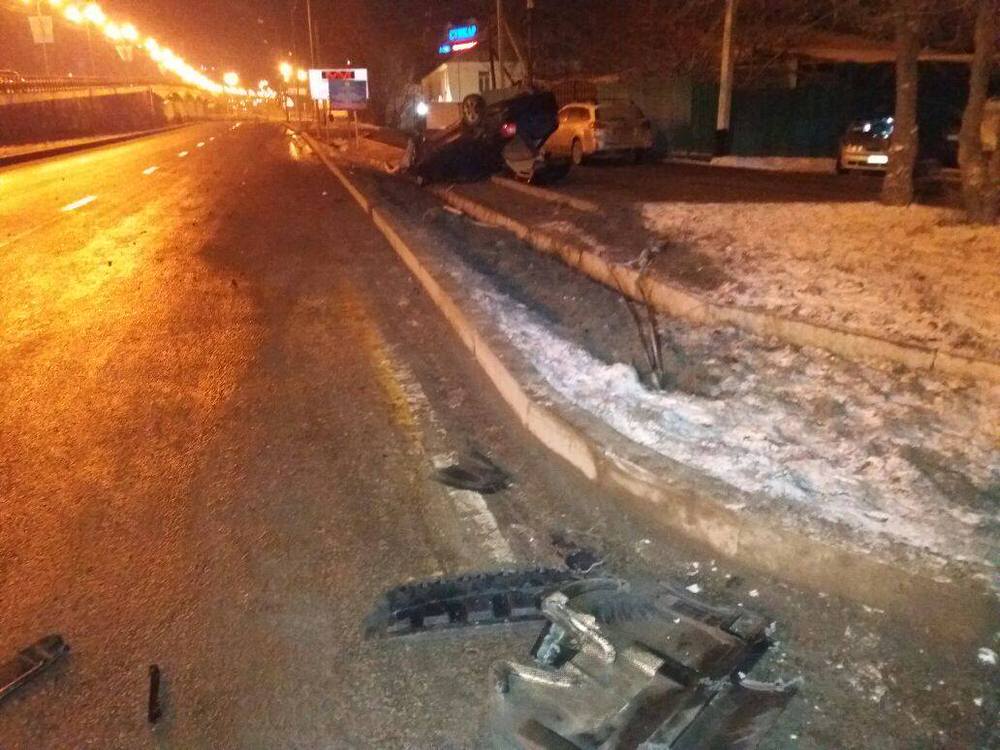 По словам очевидцев, Skoda Rapid двигалась в западном направлении по Кульджинскому тракту. Перед улицей Халиуллина водитель не справился с управлением из-за гололеда, и автомобиль занесло. Иномарка снесла дорожный знак и фонарный столб, после чего перевернулась на крышу.