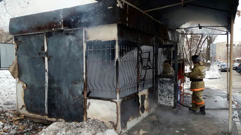 В Алматы сгорел торговый киоск
