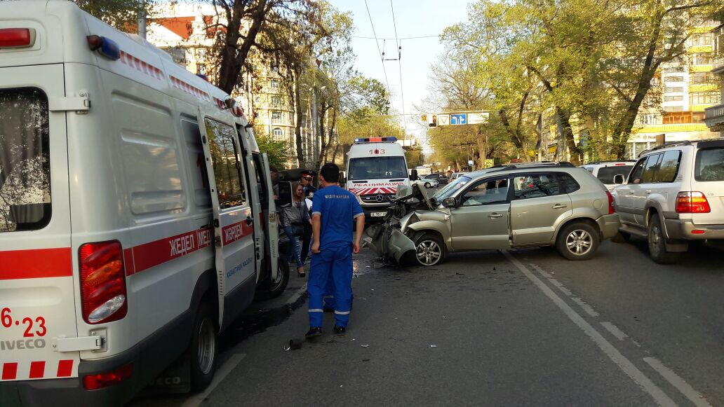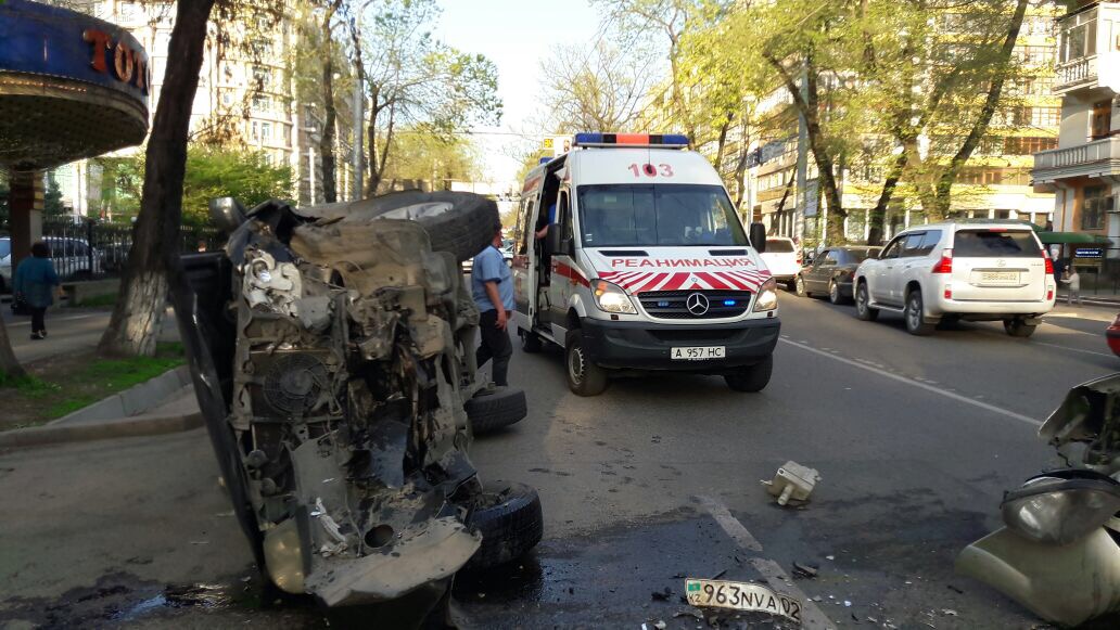 Столкновение машин произошло на пересечении улиц Сейфуллина и Кабанбай батыра, передает Total.kz со ссылкой на очевидцев. Автомашина Huindai, двигаясь в восточном направлении, по невыясненным причинам выскочила на полосу встречного движения и допустила лобовое столкновение с Toyota Fortuner. Последнюю от удара перевернуло на дороге. В результате ДТП пострадали трое человек. Всех госпитализировали с различными травмами. Выяснением всех обстоятельств аварии занимается ДВД Алматы.