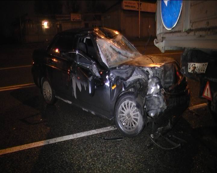 ДТП произошло на пересечении улиц Бекмаханова и Бартольда. Автомашина Lada двигалась в восточном направлении по Бекмаханова, на затяжном повороте водитель не справился с управлением и на полном ходу врезался грузовик.