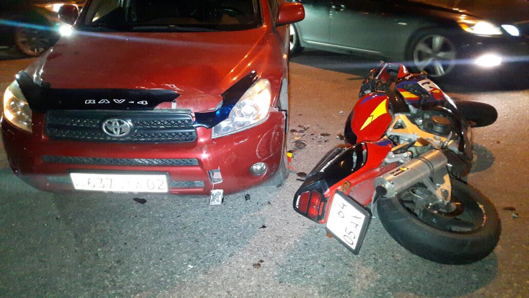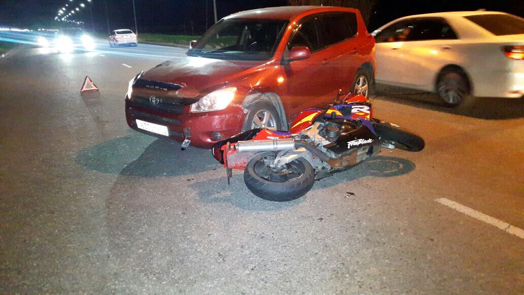 ДТП произошло на пересечении улиц Мустафина и Аль-Фараби. Водитель Toyota Rav-4, выезжая с парковки, не пропустил мотоциклиста, ехавшего в южном направлении по Мустафина. В результате чего последний въехал в бок автомашины. От столкновения пострадал мотоциклист, которого госпитализировали с различными травмами. Выяснением всех обстоятельств занимается ДВД Алматы.