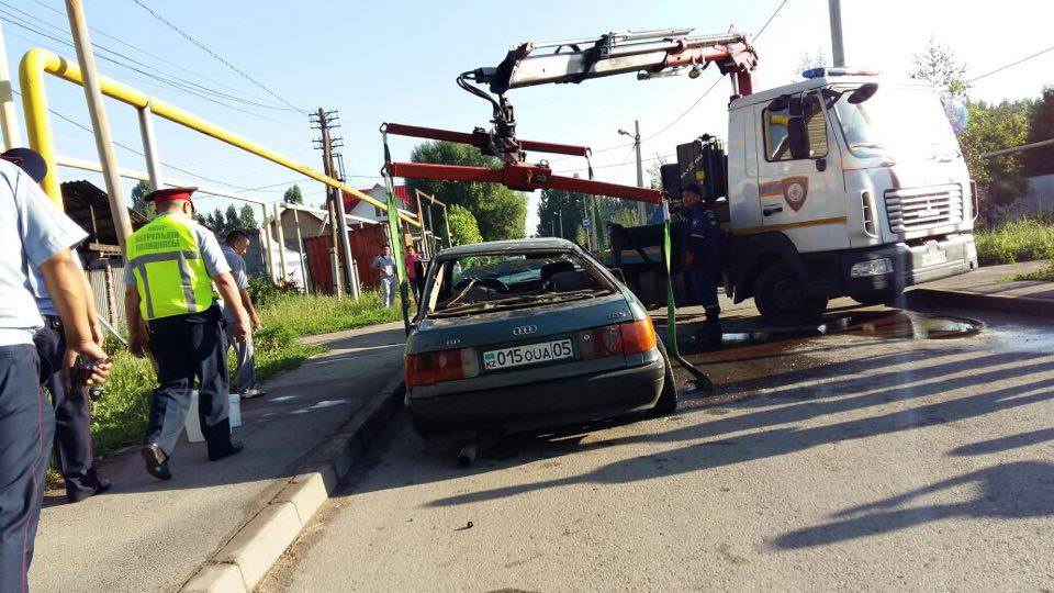 Второе ДТП произошло в микрорайоне Айгерим-2 на улице Мамытова. По словам очевидцев, Audi ехала на большой скорости, водитель не справился с управлением и наехал на бордюр.