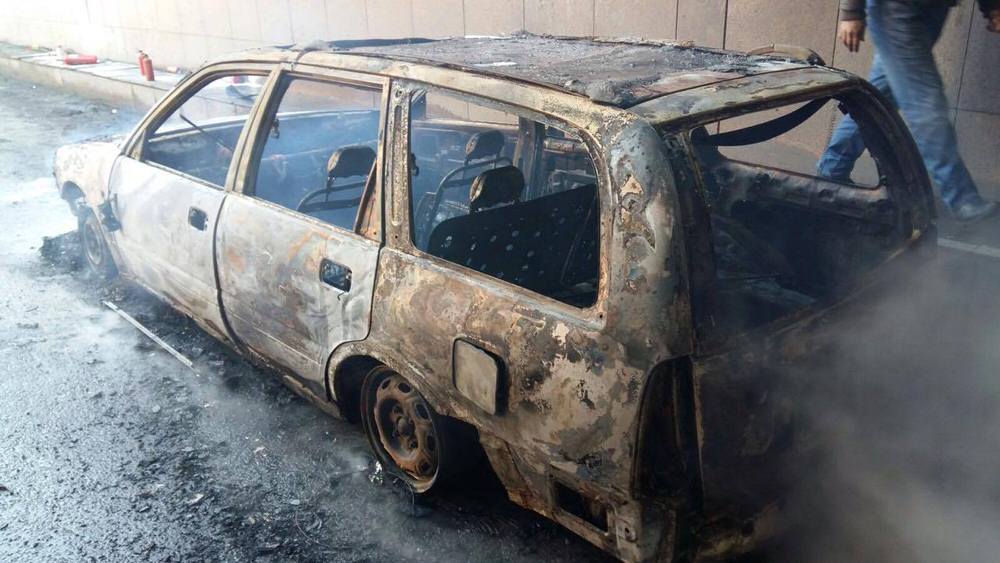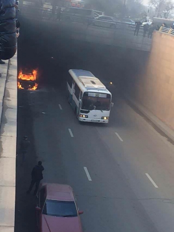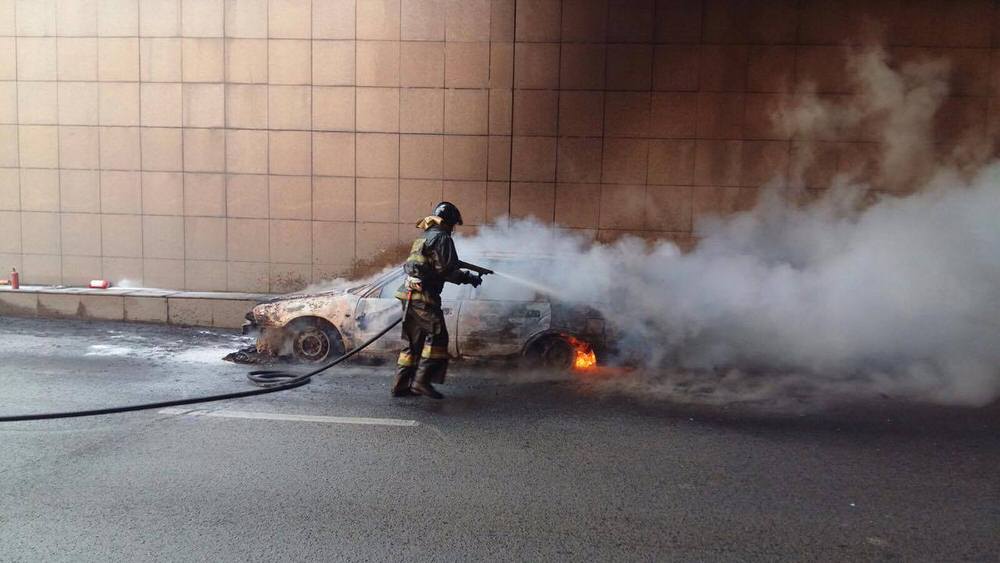 Автомашина Nissan Primera двигалась по проспекту Райымбека в восточном направлении. Неожиданно произошло короткое замыкание, за считанные секунды машину охватило пламя.