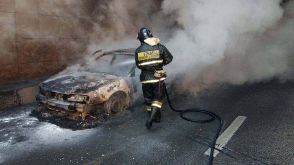 Громадные пробки помешали сотрудникам ДЧС быстро приехать на место происшествия. К горящей машине смог добраться лишь один пожарный расчет, но и он ехал по полосе встречного движения.