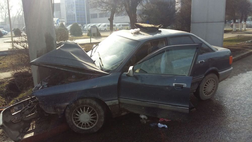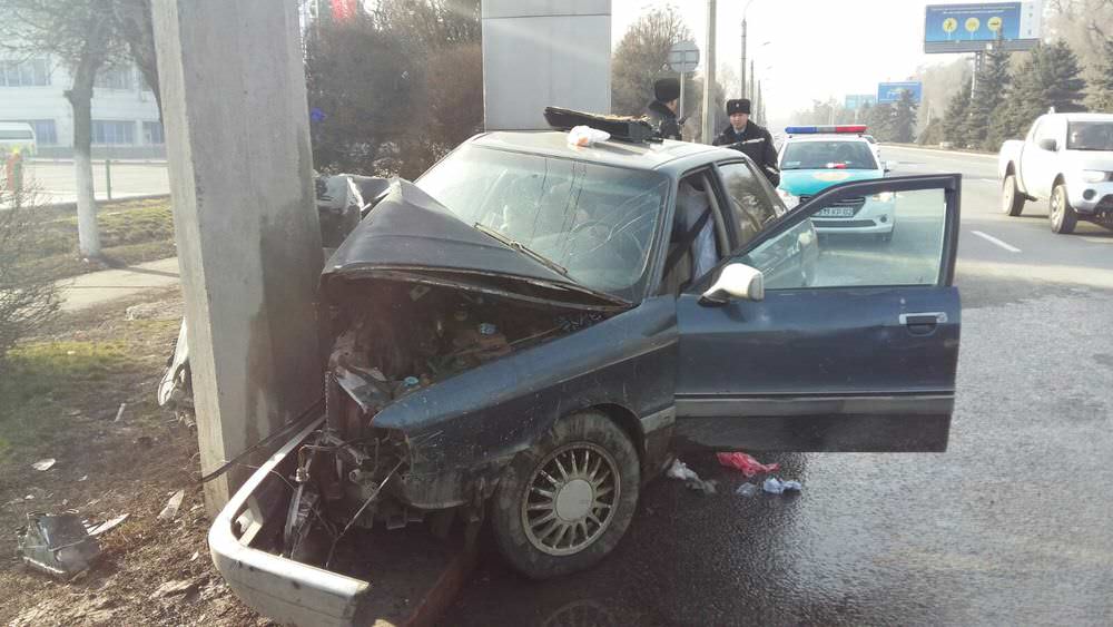 В Алматы водитель Audi разбился о фонарный столб (ФОТО)