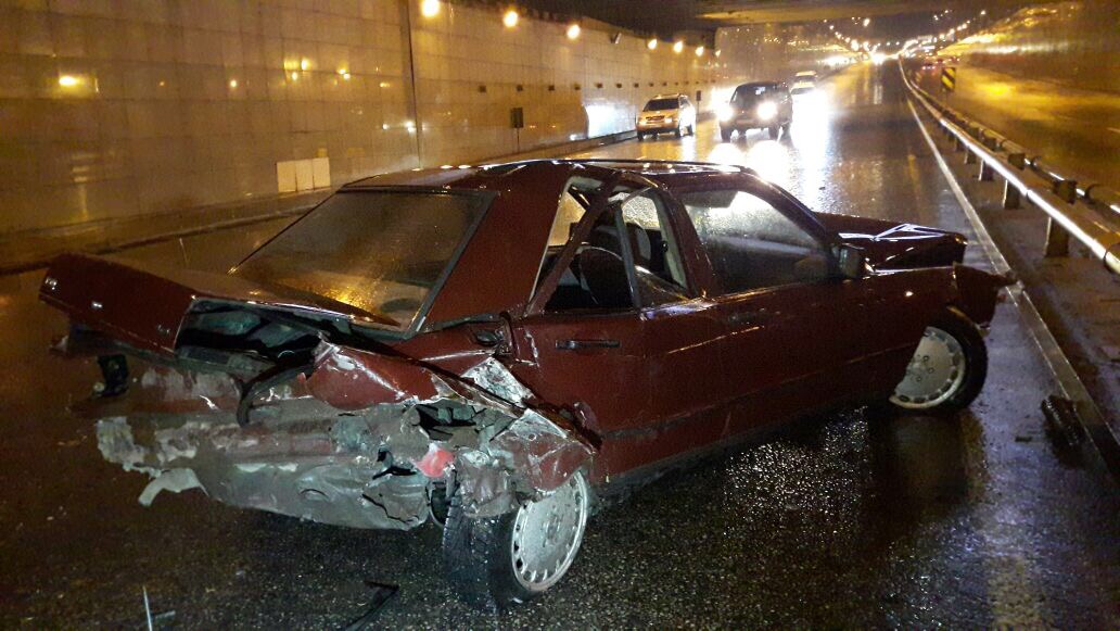 Машины двигались в северном направлении, когда в тоннеле под мостом в Газель въехала автомашина Mercedes. По предварительным данным у последней машины прострелило колесо, в результате чего ее откинуло в Газель, а затем в отбойник. После этого метров через 30 машина смогла остановиться.