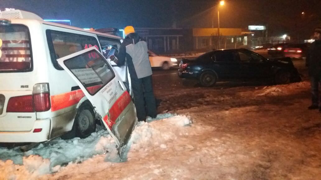 Авария с участием автомобиля скорой помощи произошла на проспекте Раимбека, передает Total.kz.