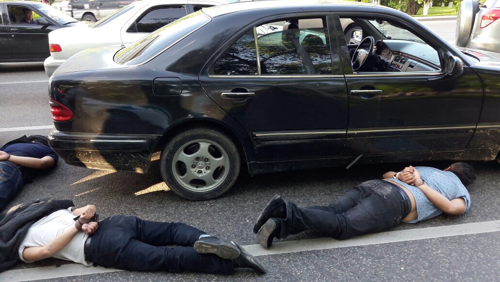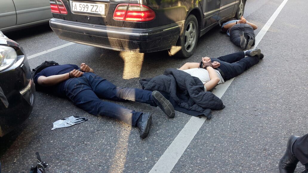 В ходе оперативно-разыскных мероприятий управления криминальной полиции ДВД Алматы при ОРМ на пересечении улиц Алтынсарина и Джандосова были задержаны три человека. По словам очевидцев, сотрудники правоохранительных органов остановили машину Mercedes, в которой находились грабители.