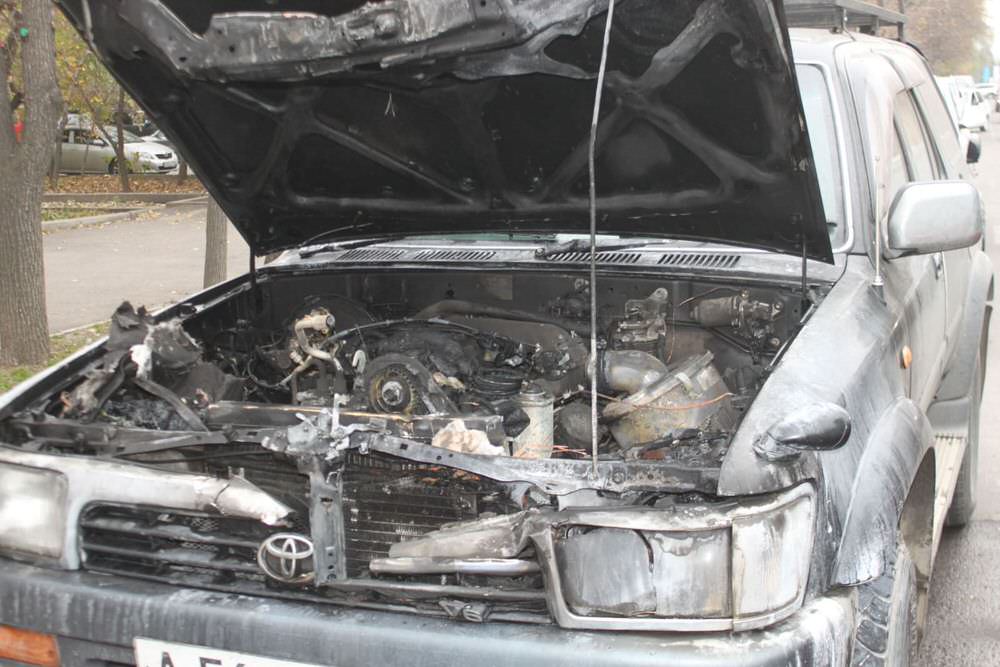 Загорелся припаркованный у обочины дороги автомобиль марки Toyota Surf. Прохожими был вызван наряд пожарной службы.