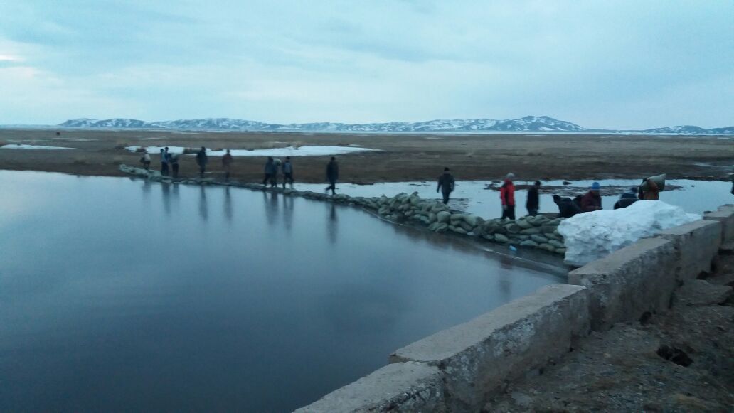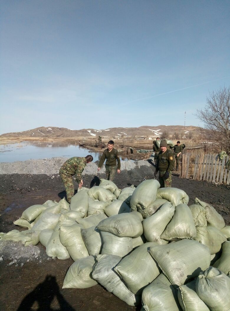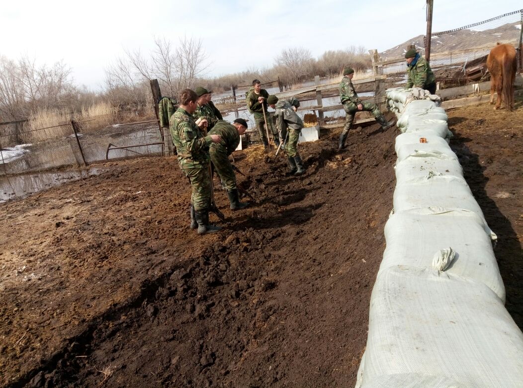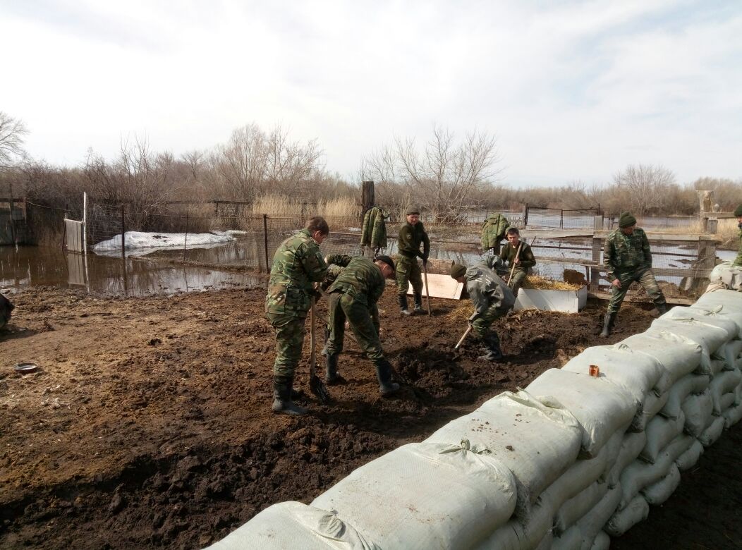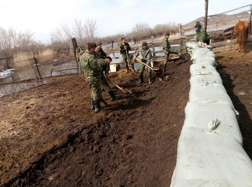 В Жалтырколе 13 апреля произошло подтопление зданий (столовая, казарма, штаб, общежитие, гостиница, клуб) войсковой части 44813. Подтопление произошло грунтовыми талыми водами. Подъем талых вод в подвальных помещения до одного метра. МИО проводятся работы по отводу талых вод путем прокопки отводного канала. С целью отведения талых вод производится укладка инертных материалов в мешкотару. Уложено 2500 мешков. Производится откачка грунтовых вод из подвальных помещений. Работы продолжаются.