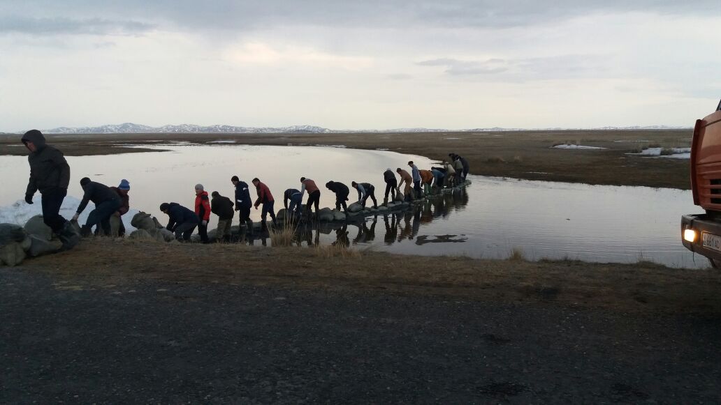 На станции 42-й разъезд выставлены мобильные посты наблюдения за прохождением паводковых вод. Подтоплено 10 дворов в результате аварийного сброса из Астанинского водохранилища, на нижней части дамбы личным составом ЦРАОСО уложено 50 мешков с песком. Эвакуировано 22 человека из 10 дворов.