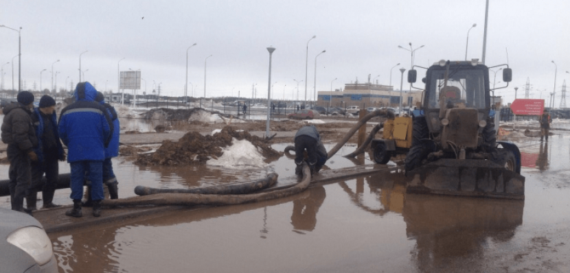 Специализированной техникой проводится откачка талых вод в разрезе трех районов. В целом по городу задействовано 138 единиц спецтехники.