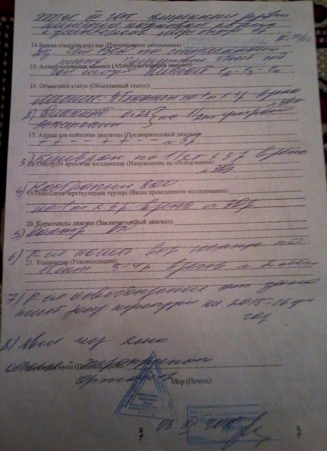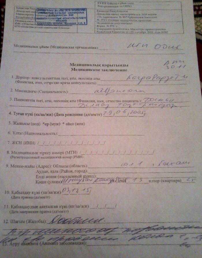 А в местной балхашской судмедэкспертизе выдали документ о полном здравии ребенка. Назима утверждает, что руководитель этого учреждения является другом семьи Батилы Едиресовой и поэтому факт побоев не был зафиксирован.