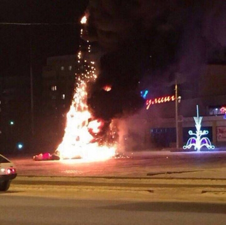 В Экибастузе сгорела главная новогодняя ель города (ВИДЕО)