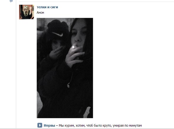 Сообщества с пропагандой алкоголя и сигарет часто посещаются подростками. Обычно группа из более двух тысяч человек на 98% состоит из школьников в возрасте от 12 до 16 лет.