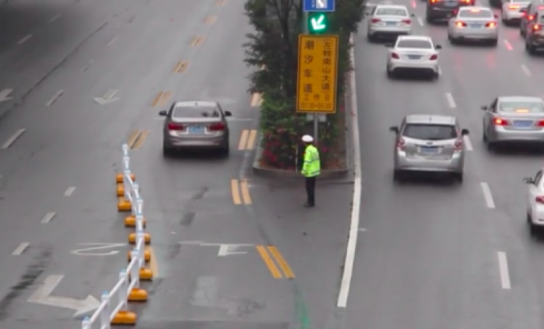 Власти китайского города Шэньчжэнь начали применять особых дорожных роботов для борьбы с пробками.